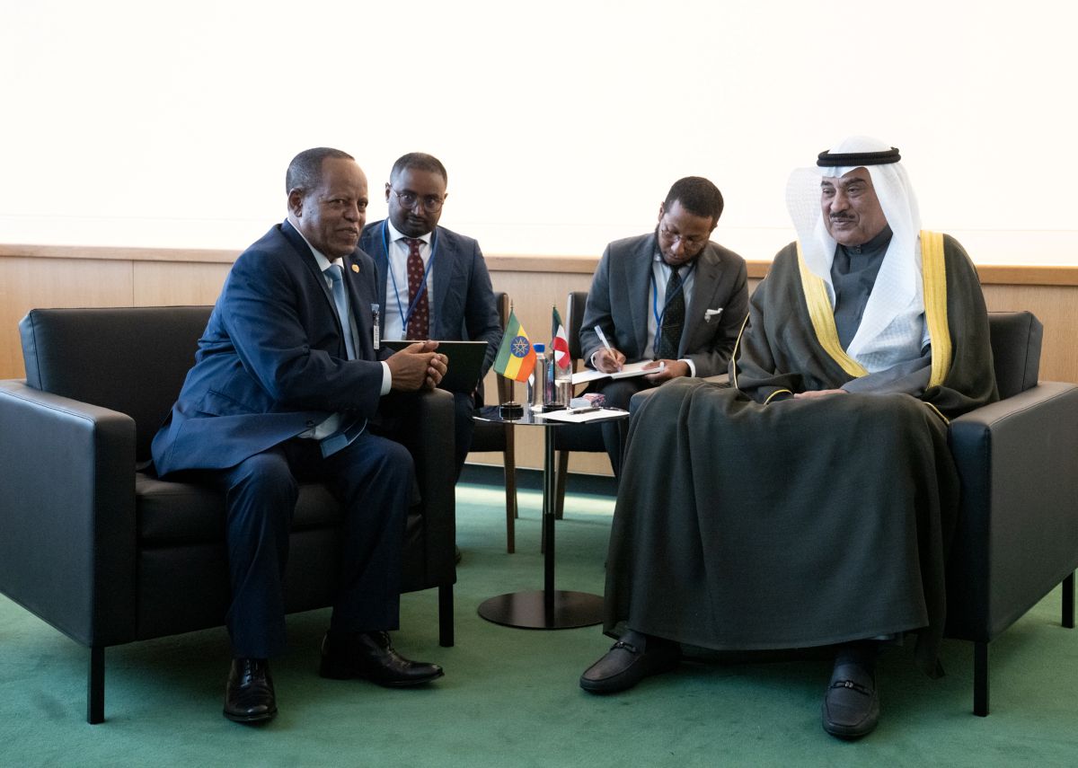 صباح خالد الحمد الصباح حفظه الله فخامة الرئيس مسعود بزشكيان رئيس الجمهورية الإسلامية الإيرانية الصديقة على هامش أعمال اجتماعات الدورة الـ80...