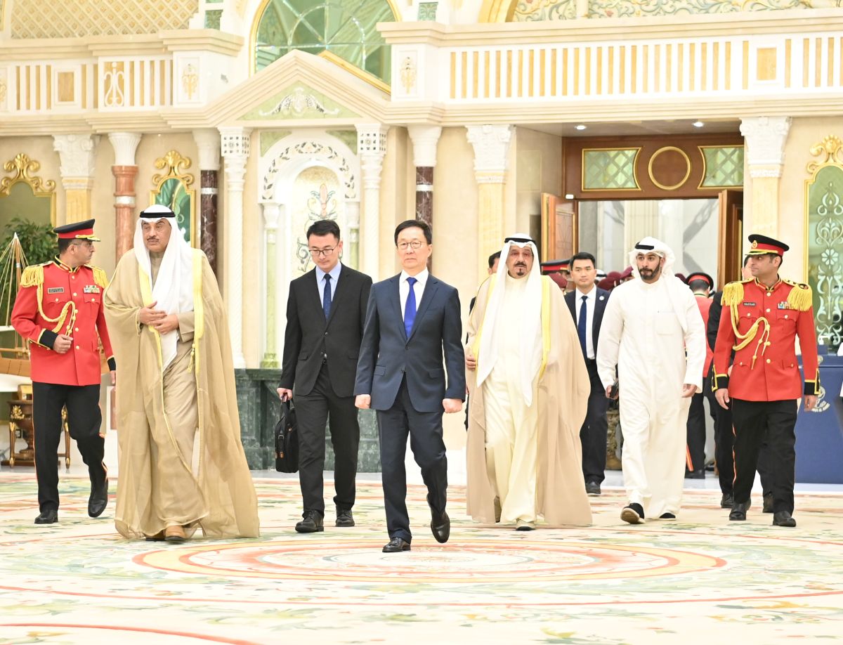 استقبل سمو ولي العهد الشيخ صباح خالد الحمد الصباح حفظه الله بقصر بيان صباح اليوم معالي نائب رئيس جمهورية الصين الشعبية الصديقة هان تشنغ وذل...