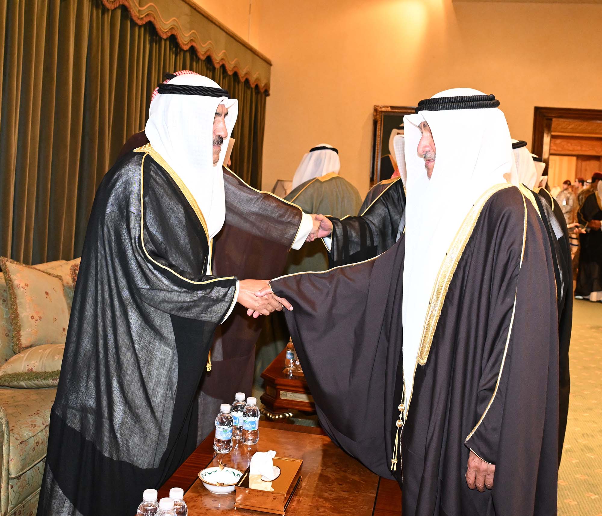 His Highness the Crown Prince Sheikh Sabah Khaled Al-Hamad Al-Sabah, His Highness the Prime Minister Sheikh Ahmad Abdullah Al-Ahmad Al-Sabah and the Royal Family received on Wednesday the envoy of Bahrain's King Hamad Bin Essa Al-Khalifa, the Crown Prince and Prime Minister Salman bin Hamad Al Khalifa, Advisor to the King Sheikh Khaled Al-Khalifa and the accompanying delegation, to offer condolences over the death of Sheikh Jaber Mubarak Al-Hamad Al-Mubarak Al-Sabah.