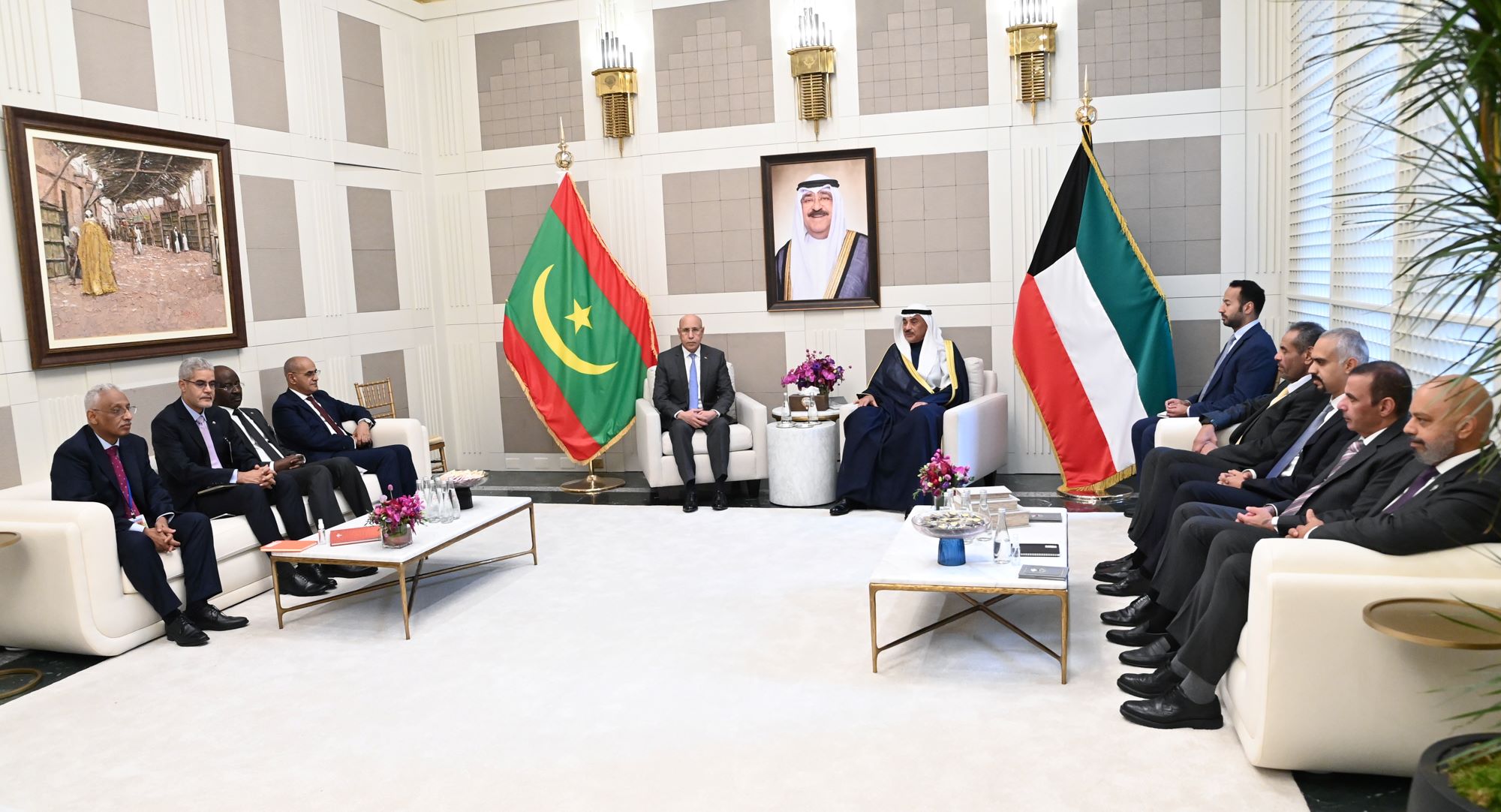 Representative of His Highness the Amir Sheikh Meshal Al-Ahmad Al-Jaber Al-Sabah, His Highness the Crown Prince Sheikh Sabah Khaled Al-Hamad Al-Sabah received, on Tuesday, Mauritanian president and the chairperson of the African Union (AU) Mohammad Ould Ghazouani on sidelines of Summit of the Future at UN Headquarters in New York.His Highness the Crown Prince Conveyed greetings of His Highness the Amir to the President of Mauritania. During the meeting, both leaders discussed ways to bolster bilateral relations regionally as well as internationally between the State of Kuwait and Mauritania. The meeting was attended by Kuwait Foreign Minister Abdullah Ali Al-Yahya, Director General of Kuwait Direct Investment Promotion Authority (KDIPA) Sheikh Dr. Meshal Jaber Al-Ahmad Al-Sabah, Foreign Affairs Undersecretary at the Crown Prince Diwan Mazen Al-Issa and Kuwait Permanent Representative to the UN Tareq Al-Banai.