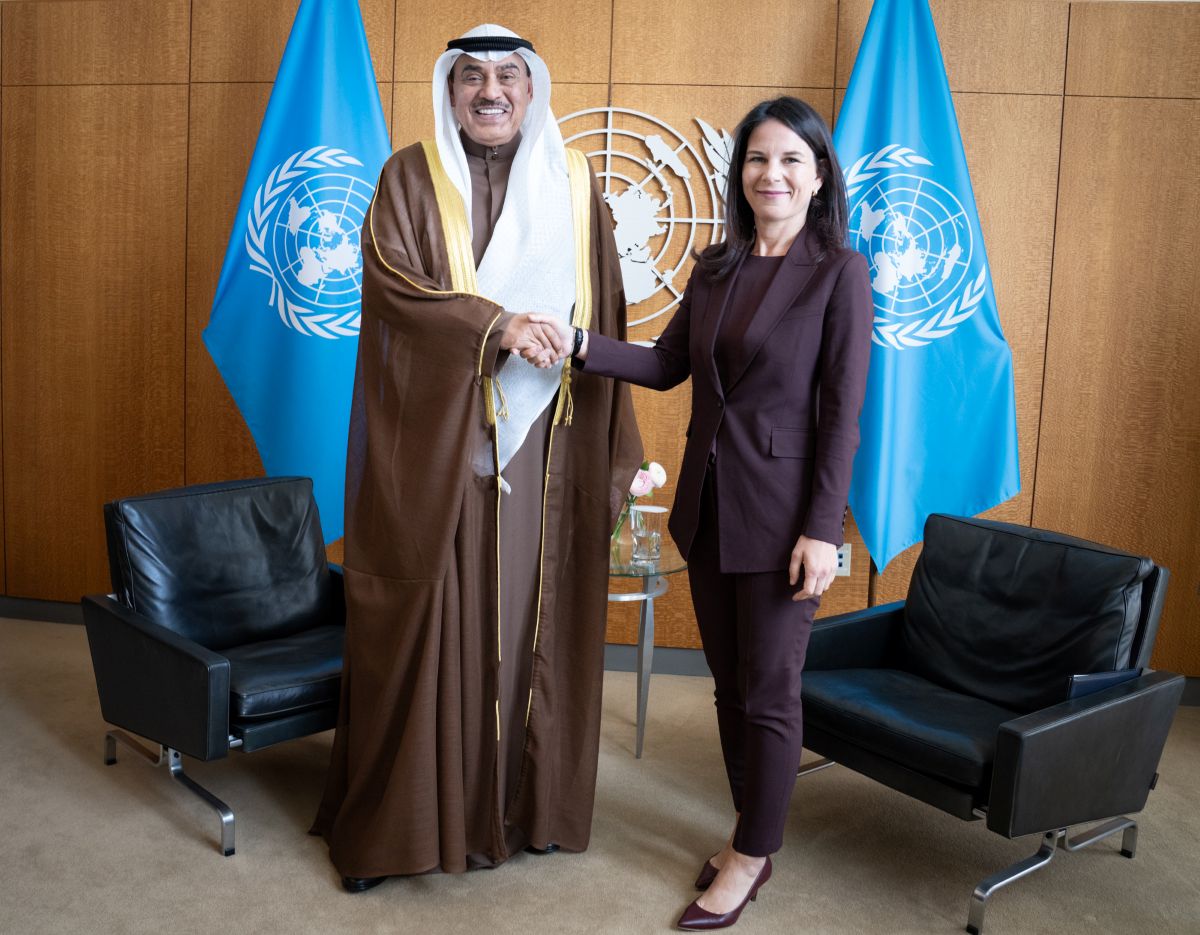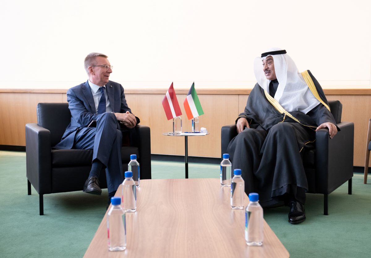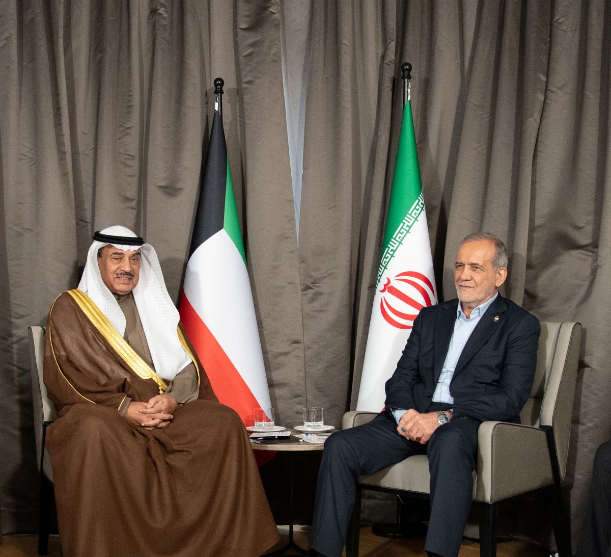 صباح خالد الحمد الصباح حفظه الله فخامة الرئيس مسعود بزشكيان رئيس الجمهورية الإسلامية الإيرانية الصديقة على هامش أعمال اجتماعات الدورة الـ80...