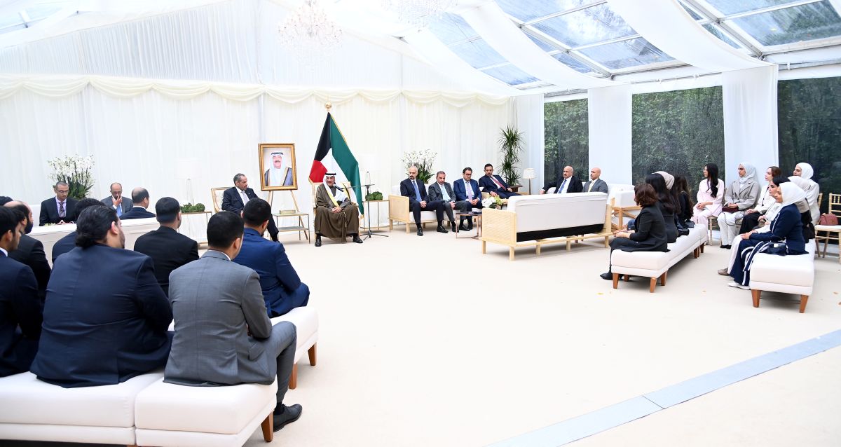 سمو ولي العهد الشيخ صباح خالد الحمد الصباح حفظه الله اليوم وبحضور معالي وزير الخارجية عبدالله علي اليحيا عددا من طلبة الكويت المتميزين الدا...